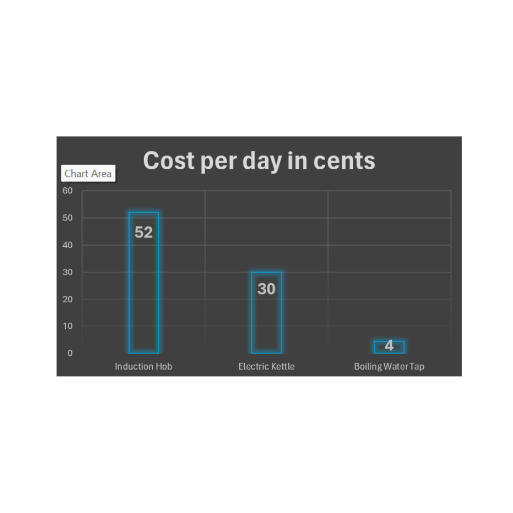 The cost of using a boiling water tap is just 4.5 cents per day. This could save a ton of money in the long term, particularly for those who regularly boil their kettles.
