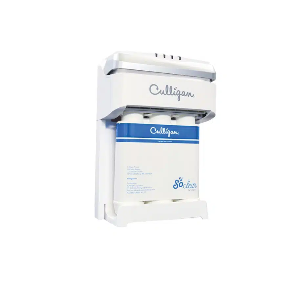 The Culligan So Clear Water Filter System is simple to use, technologically advanced and super-compact, bringing you better-tasting water, purified of unpleasant tastes and odours, directly from your kitchen tap. With triple-filtration technology, Culligan So Clear removes contaminants such as chlorine, organic compounds, turbidity, residues and suspended particles.