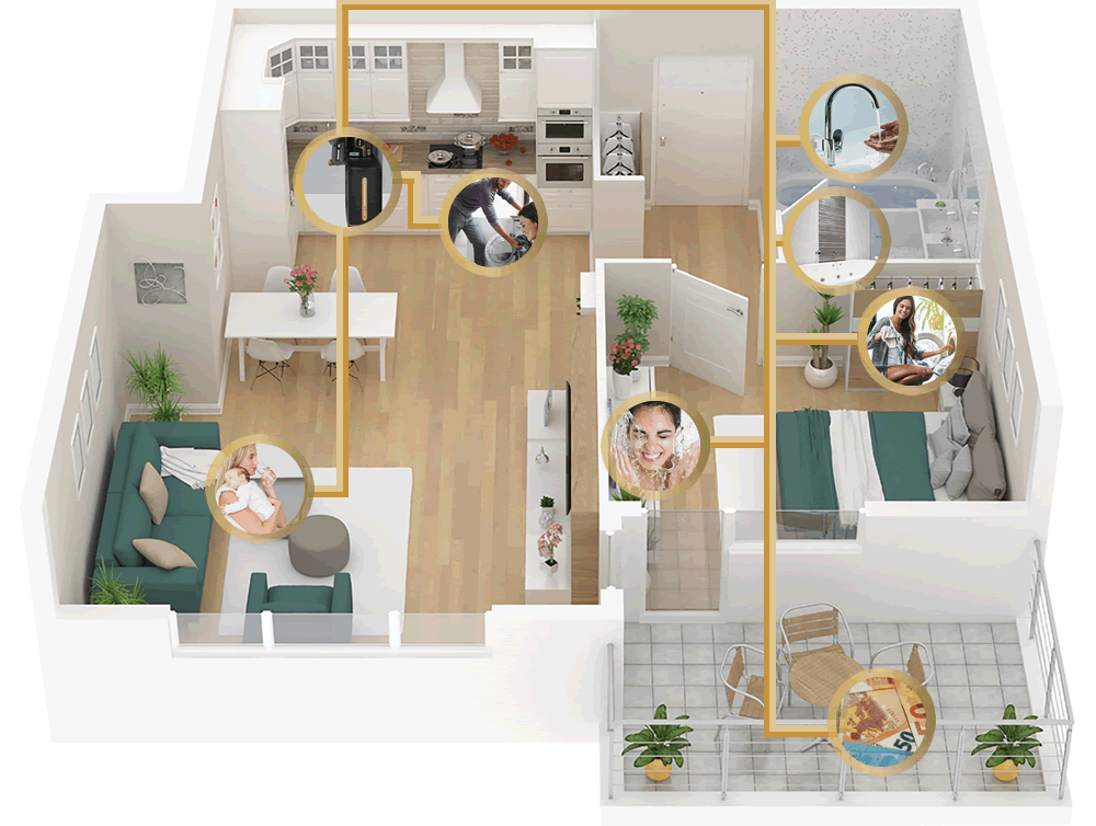 Enjoy the many benefits an EWT gold series water softener gives you. Benefits such as a reduction in limescale build up and complete removal of it over time. Soft and silky hair. Protection for your families skin from hard water.